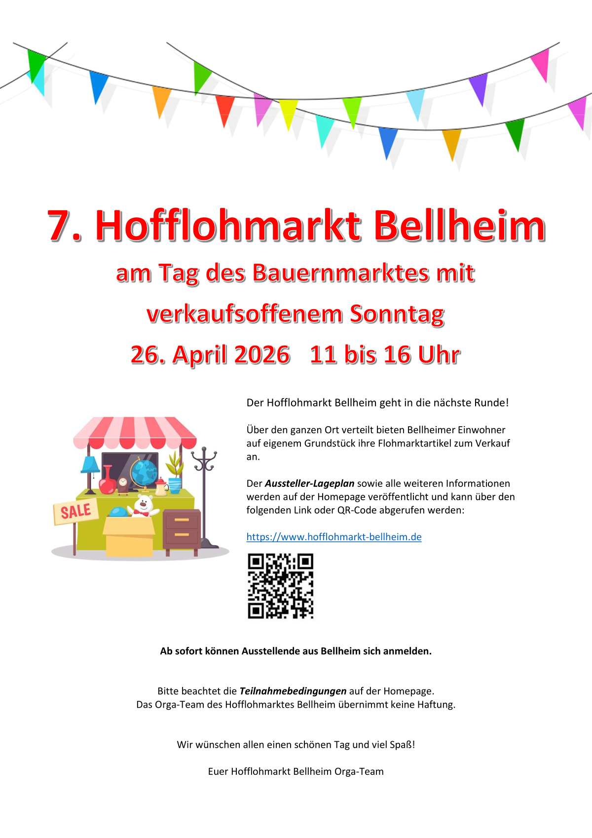 Der Hofflohmarkt Bellheim ist ein privat koordinierter Flohmarkt, ein Gemeinschaftsprojekt Bellheimer Einwohner:innen. Es basiert darauf, dass die Ausstellenden mithelfen, Werbung zu machen und Flyer zu verteilen.